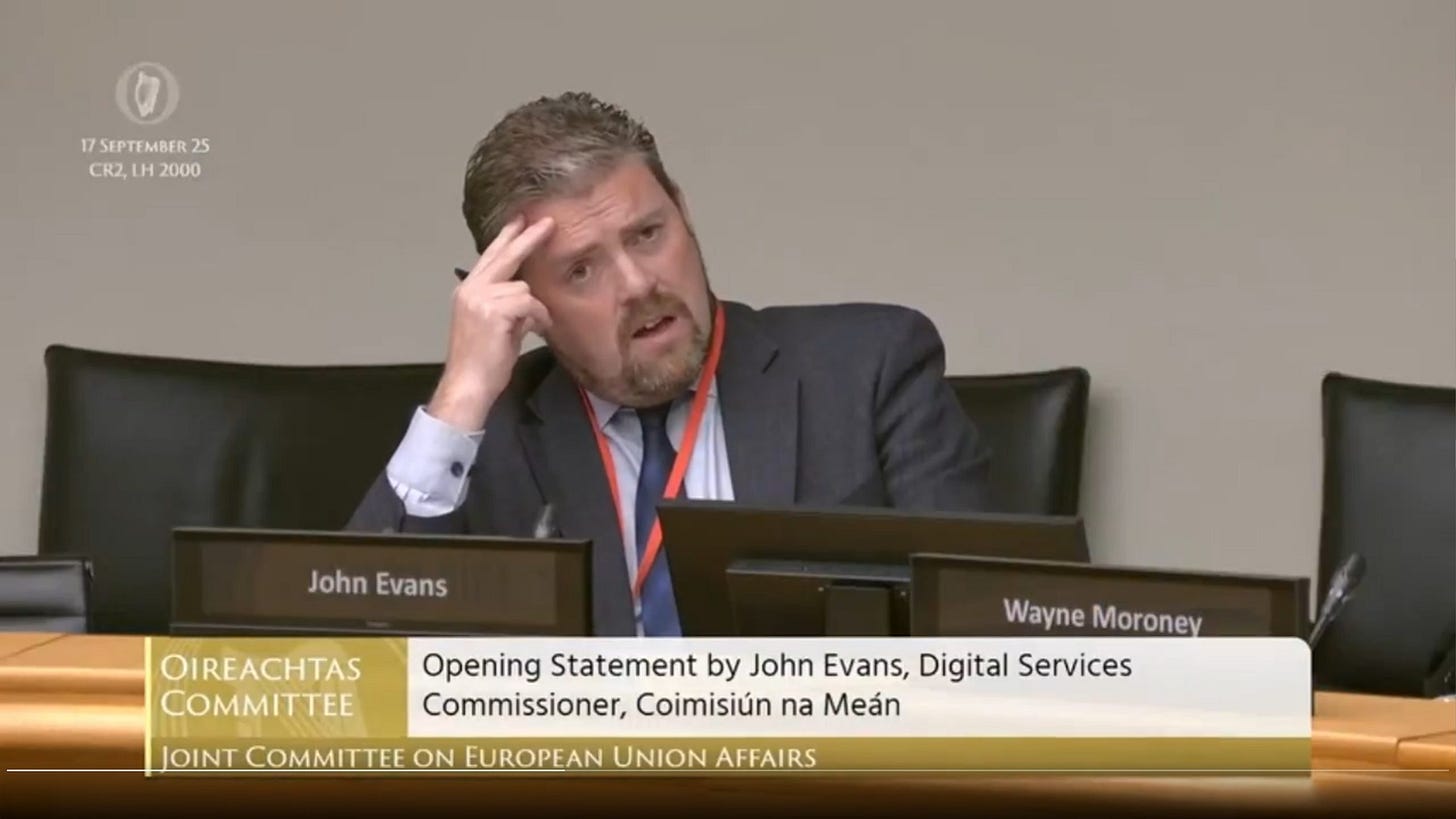 The exchange took place on Wednesday at a meeting of the Oireachtas Joint Committee on European Union Affairs, where Digital Services Commissioner John Evans was questioned by Independent Senator Ronan Mullen.
