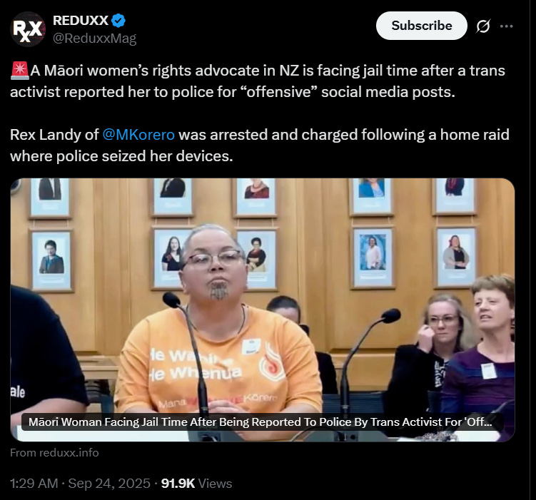 From Reduxx: Māori Woman Facing Jail Time After Being Reported To Police By Trans Activist For ‘Offensive’ Social Media Posts