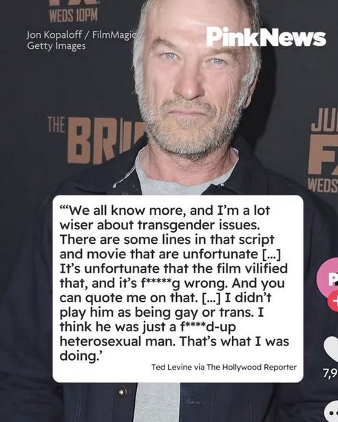 I recently covered Ed Levine, who played Buffalo Bill in Silence of the Lambs apologising to the ‘trans lobby’ for the portrayal!! See: https://dustymasterson.substack.com/p/the-silence-of-the-trans